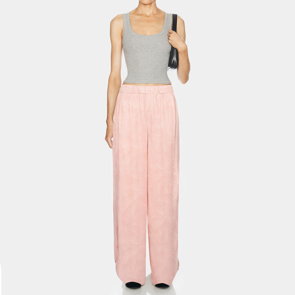 Featuring a stylish print, these long pajama pants exude a light and elegant homey feel. The elastic waistband fits snugly around your waist for a comfortable fit and easy on and off. The practical side pockets easily store essentials. The curved slit legs add a touch of mobility and breathability, allowing for a smooth and effortless stride. The overall simple and elegant silhouette is perfect for everyday wear around the house, relaxing, or sleeping.