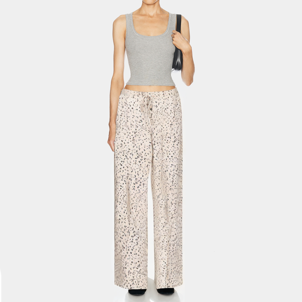 These long pajama pants feature a stylish print, showcasing a relaxed and energetic look. The elastic waistband and drawstring design ensure a comfortable fit, allowing for easy adjustment and greater freedom of movement. Practical side pockets provide convenient storage for essentials. The straight-leg silhouette drapes naturally, and the lightweight, breathable fabric is soft against the skin, keeping it dry and comfortable while you rest. The overall design combines aesthetics with practicality, making them an ideal choice for lounging around the house or sleeping.