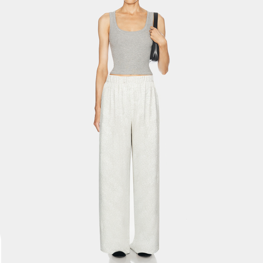 These long pajama pants for women, highlighted by a floral print, showcase a feminine and elegant loungewear style. The elastic waistband fits snugly around your waist for a comfortable, relaxed fit, making everyday activities easier. The straight-leg silhouette is streamlined and flatters the leg, creating a relaxed and natural fit. The lightweight, breathable fabric feels soft against the skin, keeping your skin comfortable and dry while you rest or sleep. The overall design combines practicality with aesthetics, making them perfect for lounging around the house or sleeping, adding comfort to your daily routine.