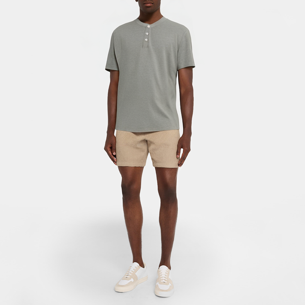 These men's pajamas feature a simple, solid color design, understated yet stylish, perfect for everyday wear around the house. The classic round neckline with decorative buttons adds a touch of detail and quality. The short sleeves allow for free arm movement, and the straight hem provides a clean, streamlined fit and comfortable comfort. The soft, breathable fabric provides a comfortable and relaxed night's rest. The stretch allows for a snug fit without feeling constricted.