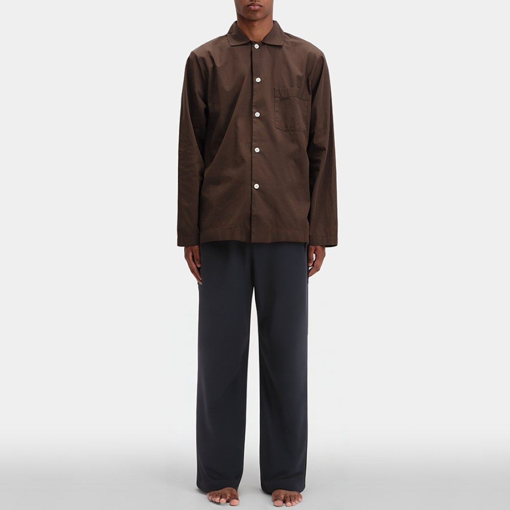 These men's pajama pants feature a simple, solid color design for an understated and stylish look, perfect for a variety of home and evening wear. The elastic waistband with drawstring ties allows for easy adjustment, creating a comfortable fit for every body type. The practical side pockets easily store essentials. The straight-leg fit offers a relaxed fit, allowing for greater mobility and a comfortable, relaxed feel. The overall style is minimalist and natural, making them an ideal choice for both home and sleep.