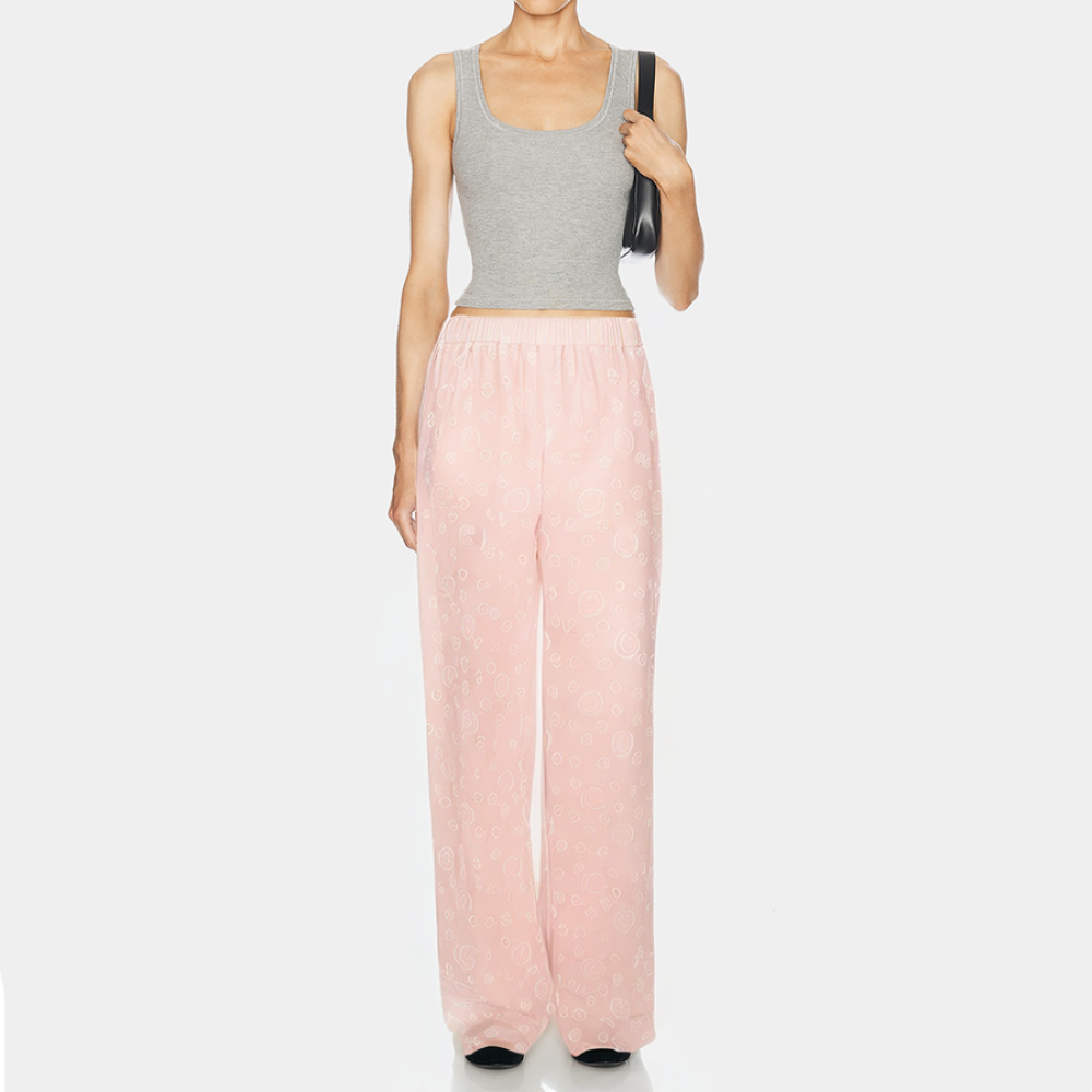 These long pajama pants feature a stylish print, showcasing a fresh, natural, casual style, perfect for everyday wear and sleep. The elastic waistband ensures a comfortable fit while offering flexibility to accommodate various body shapes. Side pockets provide added practicality, conveniently storing small items. The straight-leg silhouette drapes naturally for a comfortable, loose fit. The soft, breathable fabric is gentle on the skin, providing a relaxing and cozy home experience.