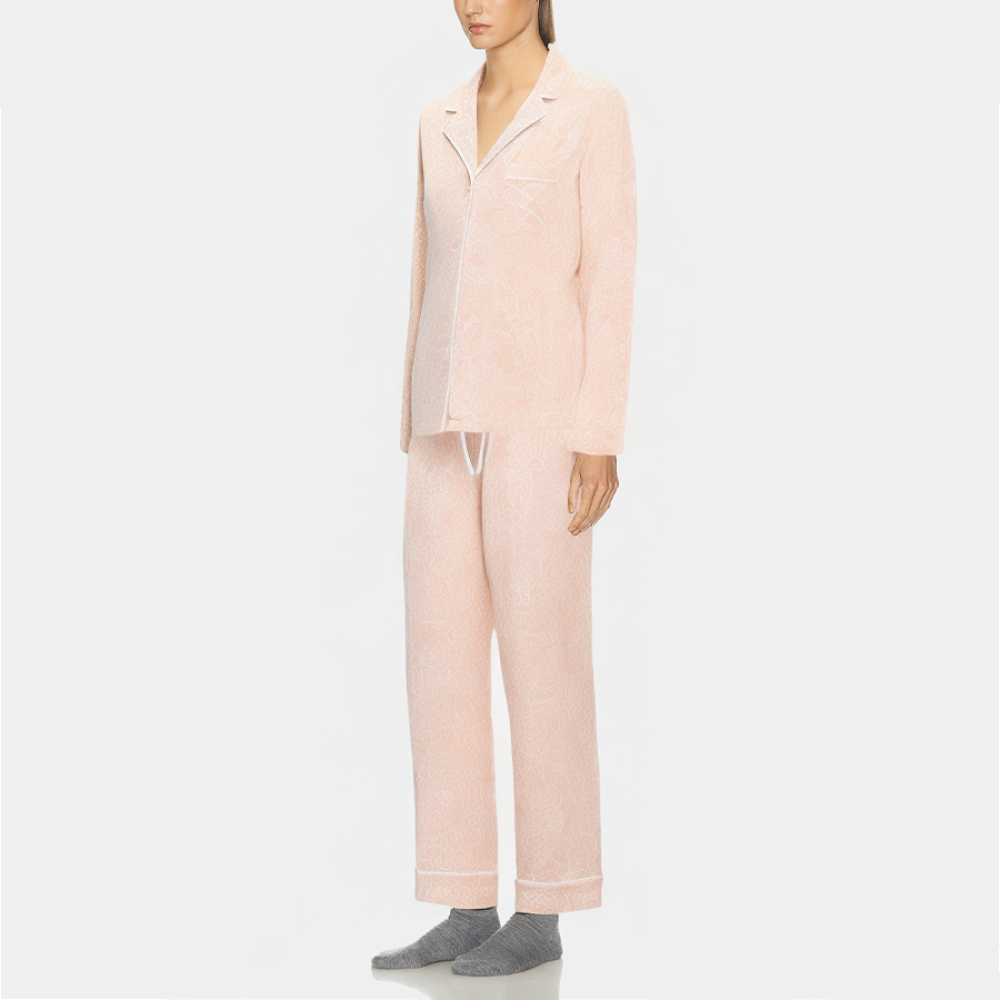 This women's pajama set combines comfort and practicality. The floral print on the top creates a feminine look. The lapel and single-breasted design create a simple yet elegant look. The long sleeves are perfect for lounging at home or sleeping, and the chest pocket adds a practical detail. The pants have a straight-leg fit and an elastic waist with a drawstring tie for an adjustable fit. The side pockets are convenient for storing small items, making them comfortable and comfortable. The pajamas are soft, lightweight, and have good stretch and breathability, making them suitable for long days at home or sleeping.