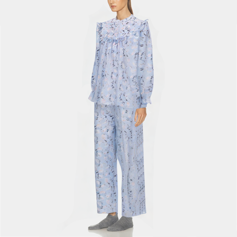 Blue printed loose women's pajamas set