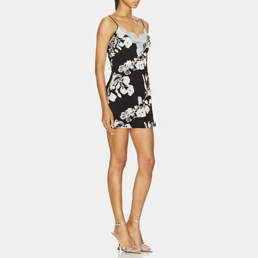 This women's nightgown features a stylish print, embodying a light and romantic vibe. The V-neck silhouette is accented with delicate lace details, adding a touch of femininity and elegance. The adjustable spaghetti straps allow for a comfortable, tailored fit. Practical side pockets provide both convenience and a relaxed feel. The loose, natural fit creates a light, drapey feel, creating a comfortable and relaxed home experience. Whether you're enjoying a nighttime nap or relaxing at home, this dress exudes sophistication.