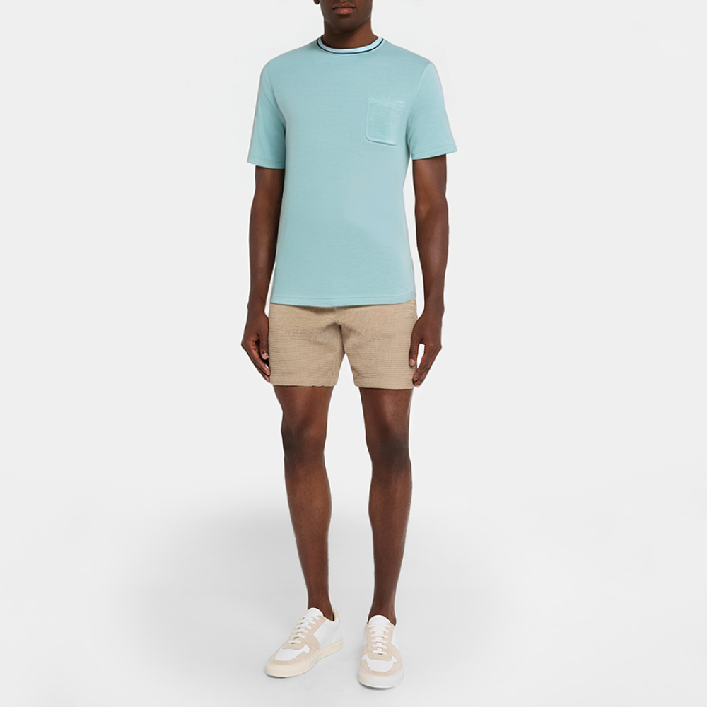 These men's pajamas feature contrasting trim, adding a stylish touch to the classic crew neck, short sleeves. The straight hem provides a clean, streamlined look, and the regular fit provides a comfortable, neither tight nor baggy fit, flattering a wide range of body types. The soft fabric offers breathability and a slight stretch for a comfortable night's sleep, allowing for unrestricted movement throughout the night. Perfect for everyday wear around the house or for lounging.