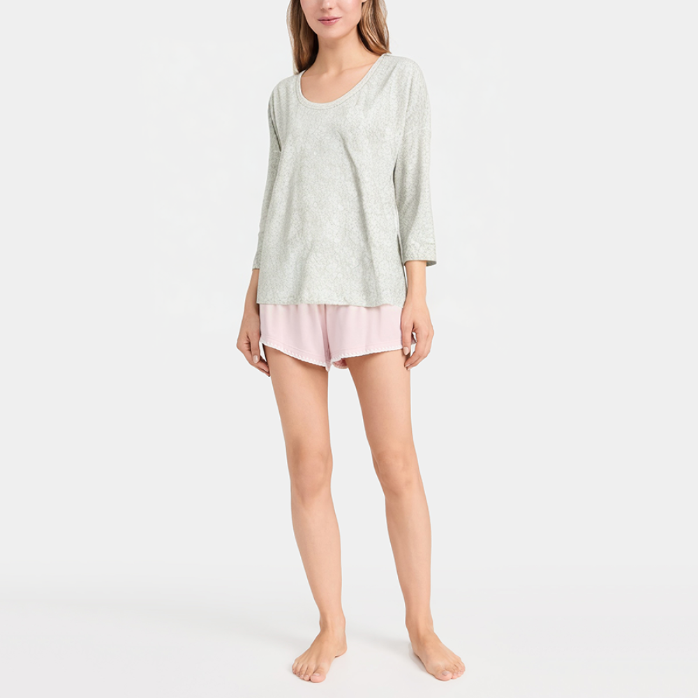 Highlighted by a beautiful print, this women's nightgown offers a fresh and elegant home style. The round neckline is simple and elegant, flattering the neckline while providing comfortable and breathable comfort. The long sleeves are suitable for warm or slightly cooler temperatures, providing all-round comfort for lounging at home and sleeping at night. The curved hem adds a smooth silhouette, adding layered and light touches to the overall fit. The loose fit hugs the body without being too constricting, and falls naturally for a comfortable and relaxed fit.